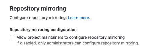 This option is enabled by default. By disabling it, both pull mirroring and push mirroring no longer work in every repository. They can only be re-enabled by an administrator user on a per-project basis.