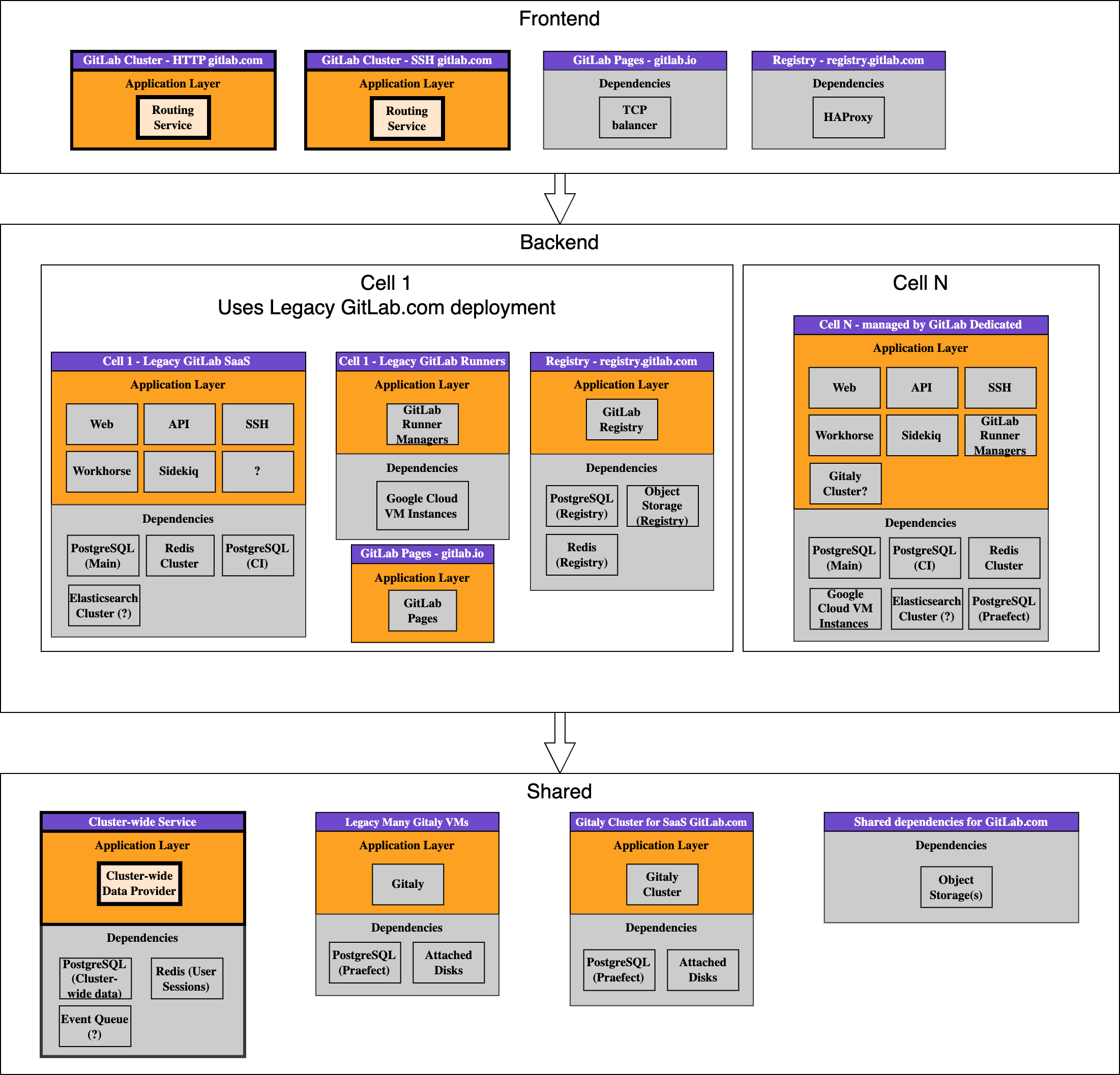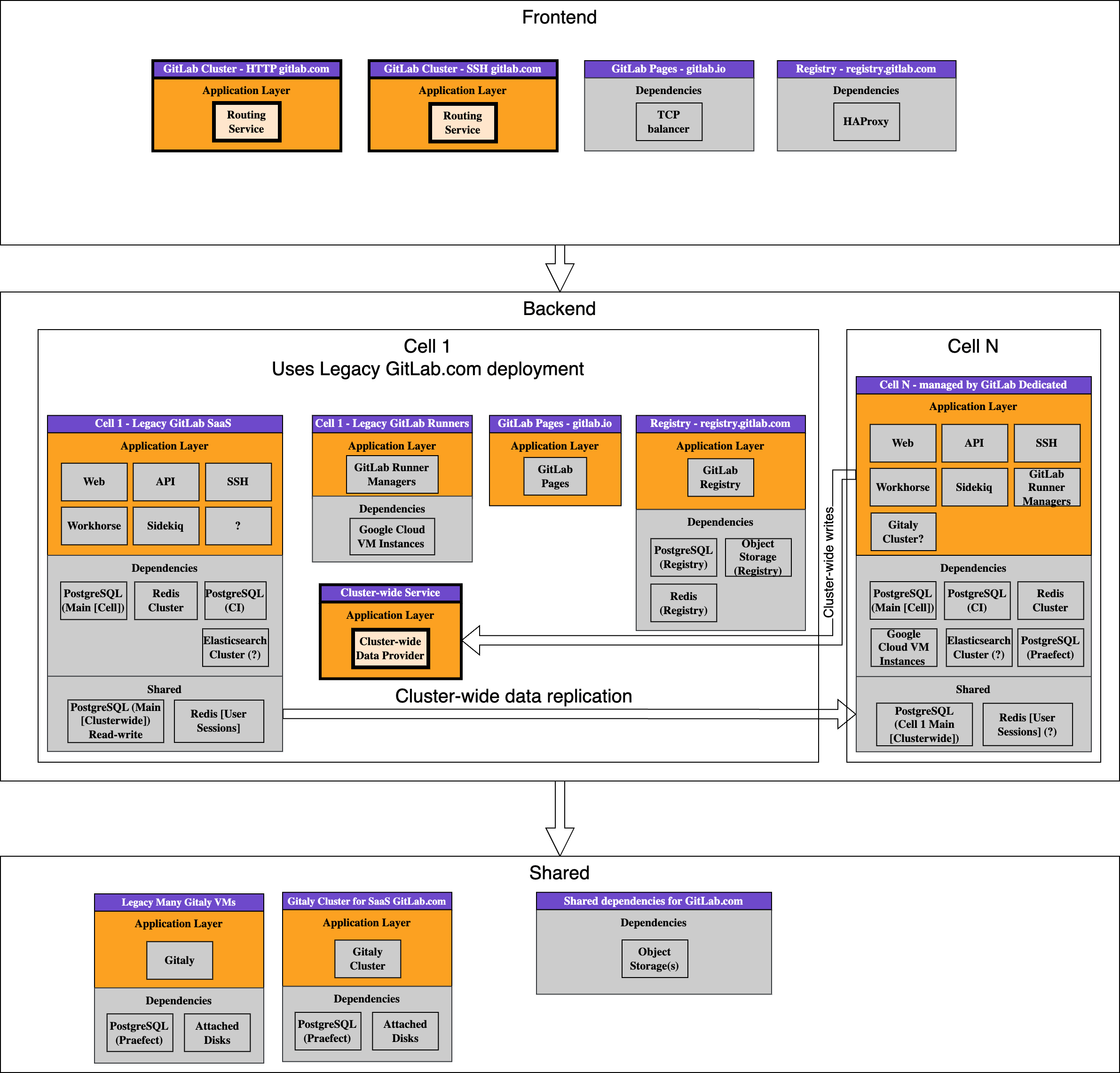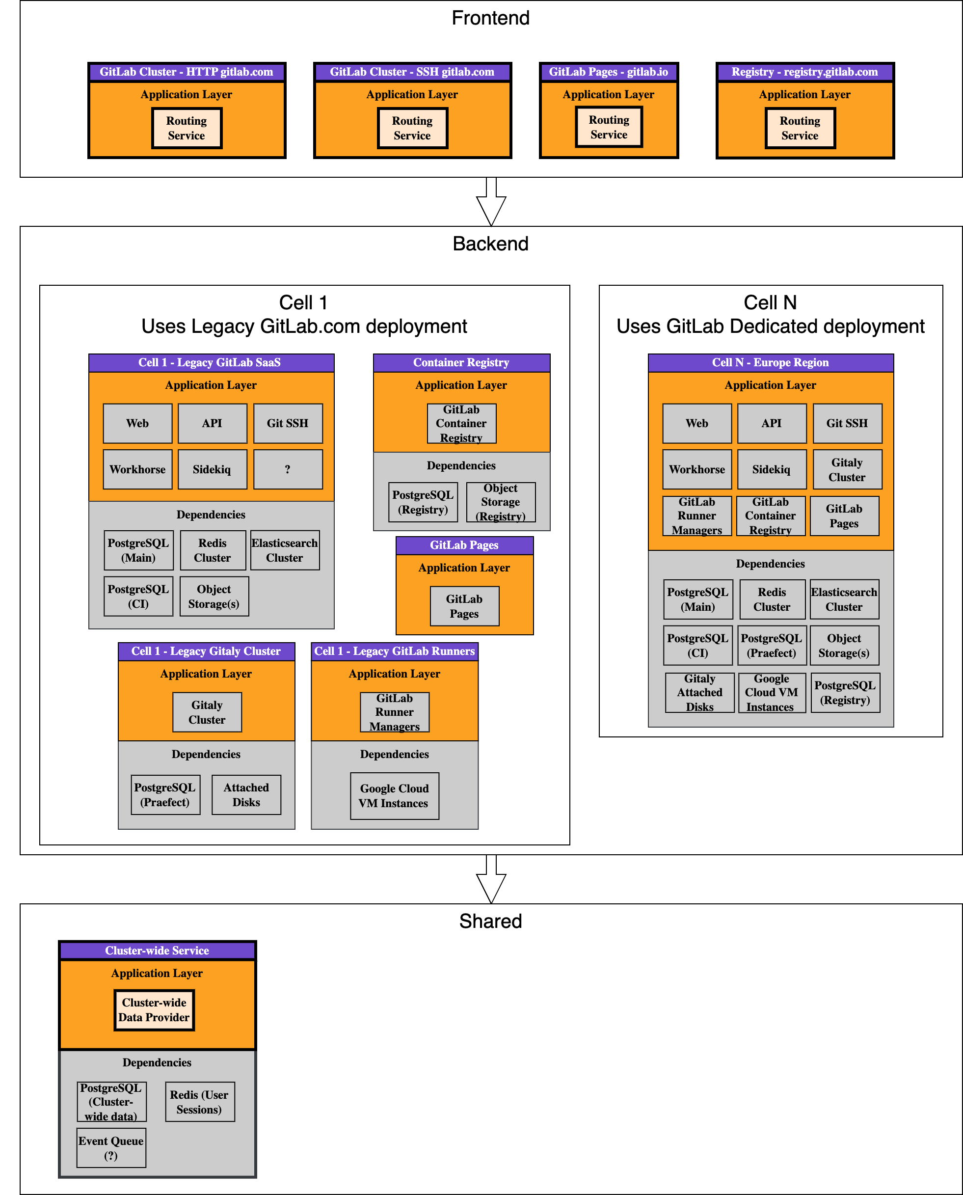 - A Cell can run its own Gitaly cluster, or can use a shared Gitaly cluster, or both. Read more in !131657.