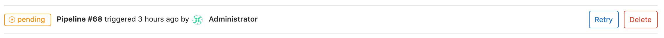 Select a pipeline to open the Pipeline Details page and show the jobs that were run for that pipeline. From here you can cancel a running pipeline, retry jobs on a failed pipeline, or delete a pipeline.