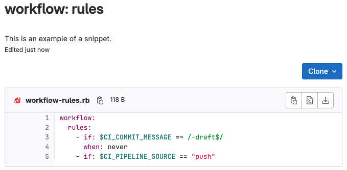 - Go to your snippet in the GitLab UI.